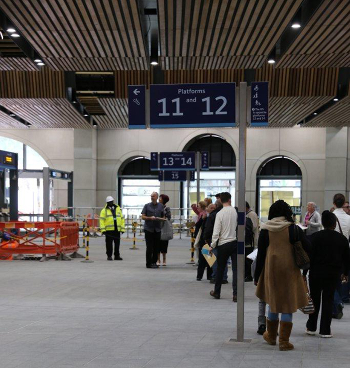 The organisation of the street-level concourse means that it can be used as a general thoroughfare, a ticket only being required to access that area immediately served by escalators and lifts to the platforms. This is a view towards Tooley Street. © Maidstone Man