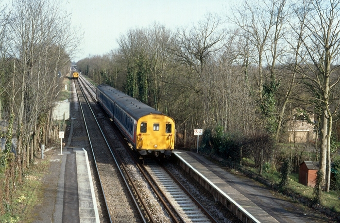 No. 205032 is seen entering Nutfield from the Tonbridge direction. The photograph was taken from the footbridge