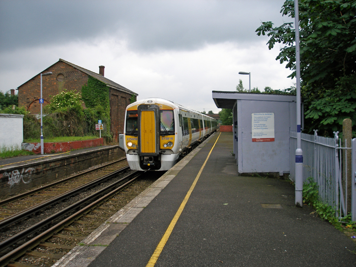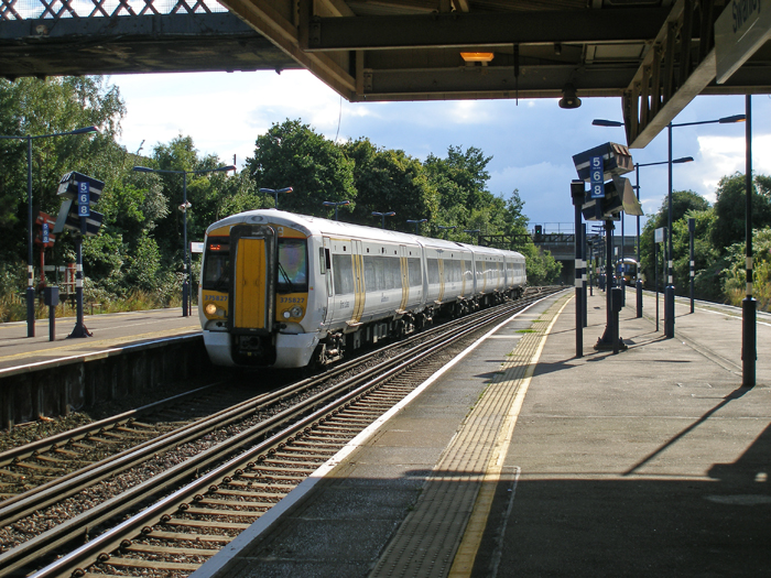 No. 375827 is seen approaching Swanley's platform 2 from Victoria. The gradient through the station is ascending at 1 in 100 in the London direction. © David Glasspool