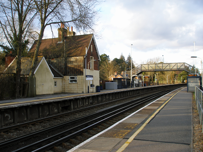 A view from the ''up'' side car park shows just how substantial the former Station Master's house is. It is evident that the whitewash finish of the lower half does not extend around the entire structure and that stone-lined window frames exist on the western elevation. The quickest service from here to Waterloo takes 1 hour 35 minutes. © David Glasspool