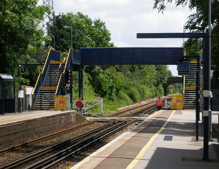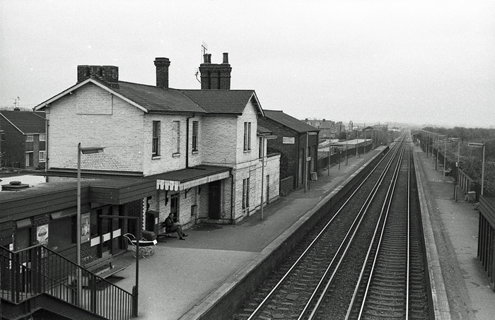 Although the station had been modernised in a rather clinical fashion, it still retained character in the form of traditional level crossing gates. These were still staffed at the time and provided access to a row of cottages behind the camera. The lengthy footbridge above had by now lost all of its lattice ironwork. © David Glasspool