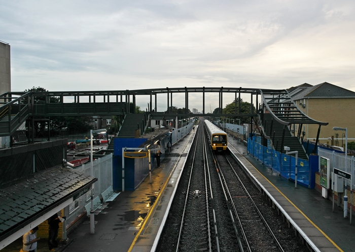 The weekend of 9th/10th August saw another complete closure of the line between Dartford and Plumstead, for the continuation of engineering works at Abbey Wood. This period witnessed the very first part of the new Crossrail station to take shape, namely the skeleton of the footbridge. The final configuration of the bridge will include a single span between the island platforms, to which will be joined two staircases, a pair of escalators, and two lift shafts. However, today’s structure has been built with a second span extending into the former car park area. This will serve the temporary station which will occupy this site until 2017, when the works are scheduled to be complete.