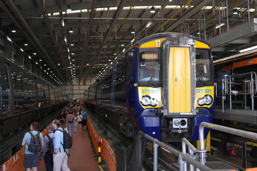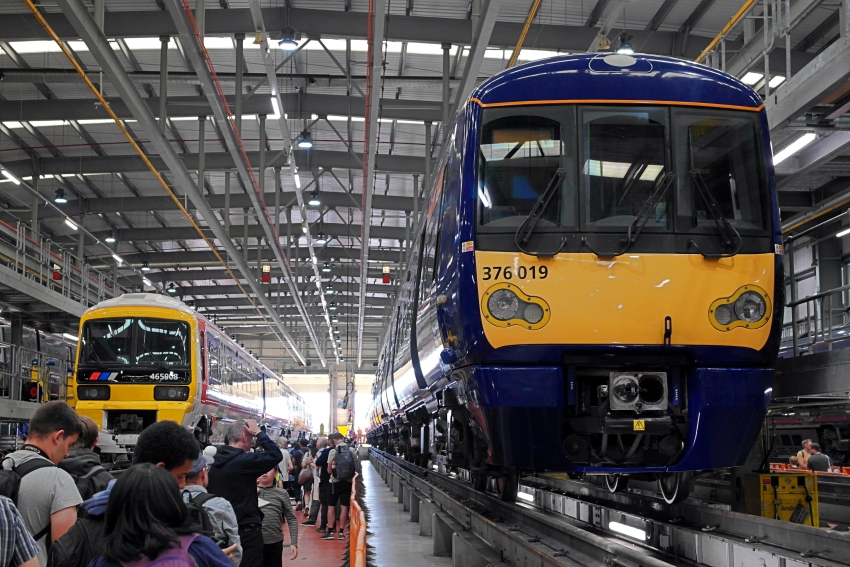 Class 376 No. 376019 is seen within the maintenance shed wearing the all-over dark blue scheme of "Southeastern". The first Class 376 unit to receive this colour was No. 376027, in April 2025 (ref: The Railway Magazine, June 2025). © David Glasspool