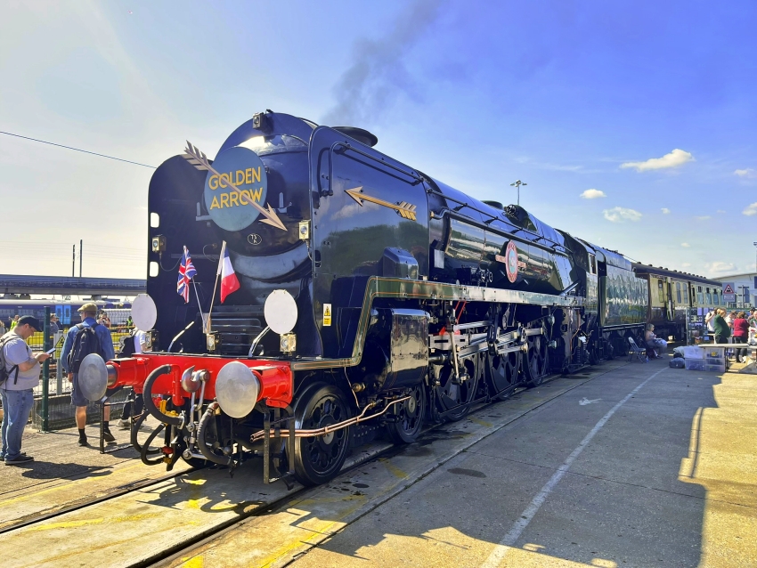 Rebuilt Merchant Navy Class No. 35028 "Clan Line" had made the journey down from Stewarts Lane, Battersea. The locomotive has been based at Stewarts Lane since 1999, having moved there after eleven years at Southall (ref: The Railway Magazine, June 1999). At the time (and, indeed, still), much of the engine’s work involved hauling charters — including the VSOE British Pullman — out of Victoria, and moving to Stewarts Lane eliminated complex movements between that terminus and Southall. Purchased for preservation direct from British Rail, rather than via a scrap merchant, a trained crew supplied by freight operator Deutsche-Bahn (DB) operate the locomotive on the main line. © David Glasspool