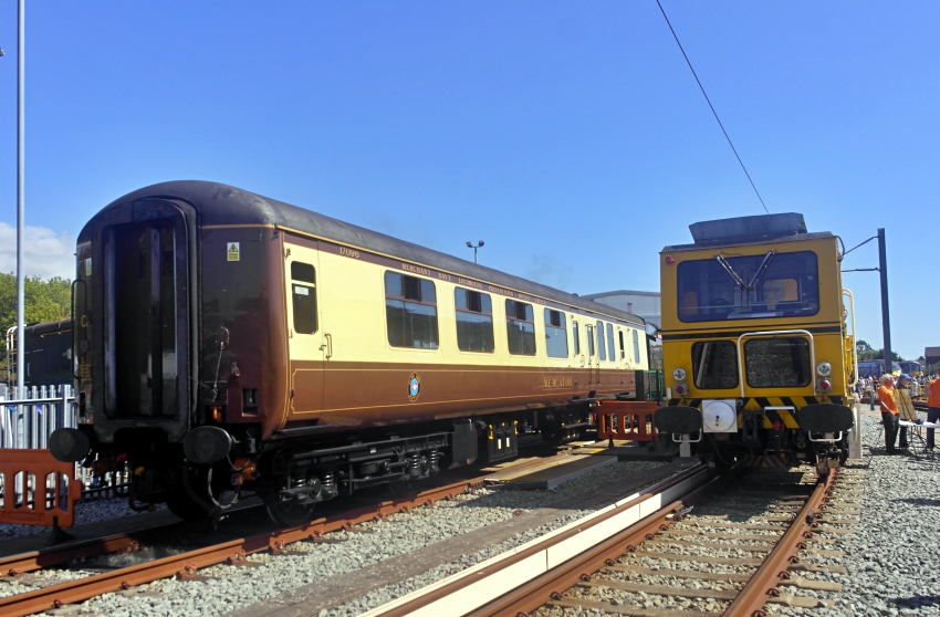 BR Mk 2a Brake First Corridor (BFK) No. 17096 is the "Merchant Navy Locomotive Preservation Society’s" support coach for "Clan Line". Formerly a Network SouthEast vehicle, it was reported in the October 1999 edition of "The Railway Magazine" that the carriage had been preserved. It was subsequently registered on "Railtrack" under the MBCS Private Owner stock pool at Stewarts Lane (ref: The Railway Magazine, July 2000). The name "Mercator" was bestowed on No. 17096 in 2008 (ref: RCTS’ The Railway Observer, July 2008). On the right is Plasser & Theurer tamper No. DR75201. © David Glasspool
