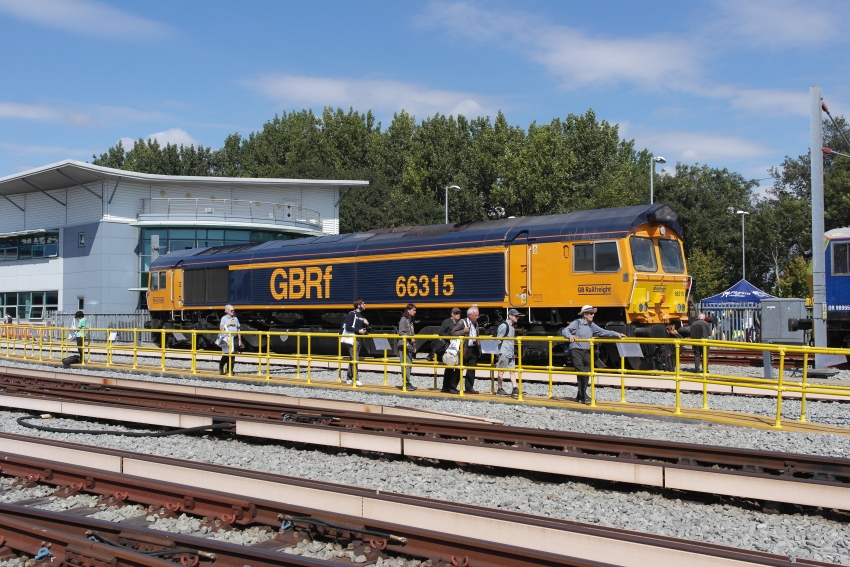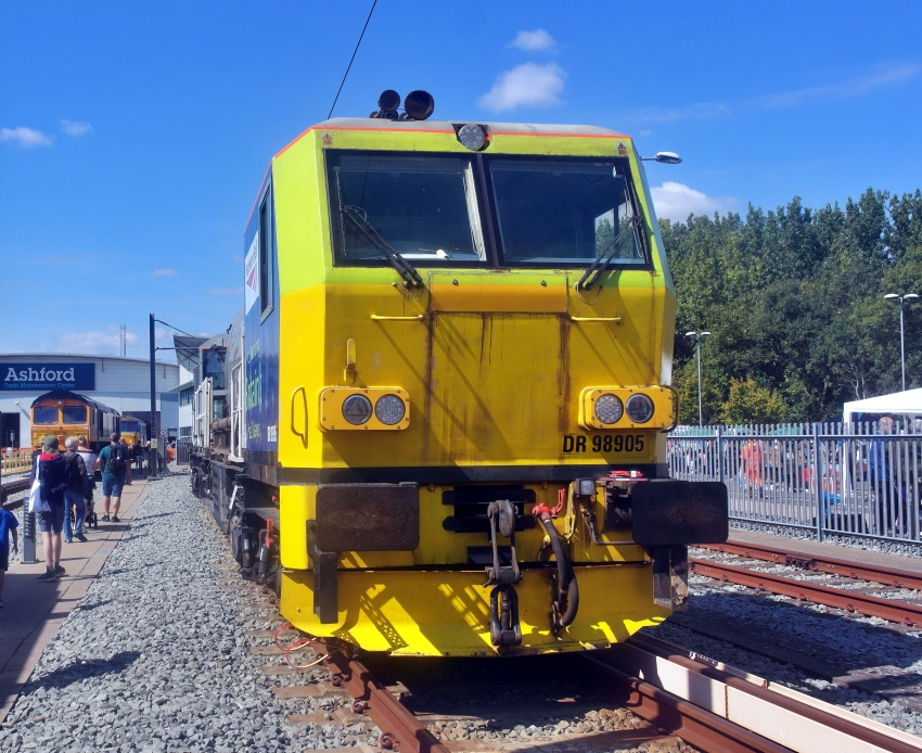 No. DR 73939 was one of two Plasser & Theurer tampers at the open day, the other being No. DR 75201. No. DR 73939 is based at Balfour Beatty’s Ashford depot, which is housed within part of the former works buildings on the opposite side of the main line. Plasser & Theurer are an Austrian company specialising in track plant, and their tamper machines are used worldwide to correct track alignment errors and consolidate ballast to provide stable track support. Behind is Class 466 No. 466019. © David Glasspool