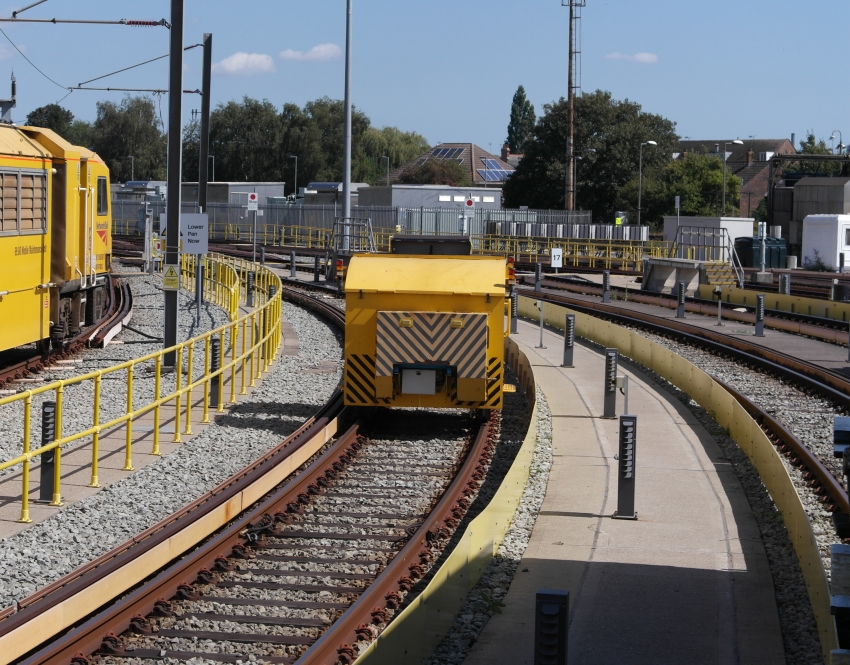 Seen from the "Hastings" DEMU is the remote-controlled battery-powered vehicle that hauls units over the wheel lathe. Built by French firm "Société Sculfort Muller & Pesant", the vehicle is guided by two sensors. © David Glasspool