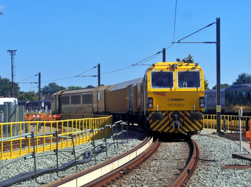"Robel Bahnbaumaschinen" of Germany specialises in manufacturing railway maintenance vehicles. Between 2015 and 2018 (inclusive), the company supplied Network Rail with eight Type 69.40 "Mobile Maintenance Systems" (MMS) sets, such as that pictured above, each comprising three vehicles: a Mobile Maintenance Unit (MMU), Intermediate Car, and Traction Supply Unit (TSU) (ref: The Railway Magazine, August 2023). The procurement of these sets formed part of Network Rail’s objective of improving the safety of personnel working on the track. For example, the MMU has walls that can extend beyond the boundaries of the vehicle’s floor, which can provide track gangs shelter from the weather and passing trains. © David Glasspool