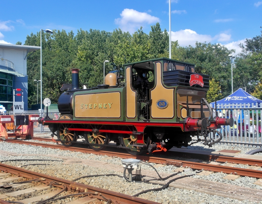 This is arguably the most well-known steam locomotive based on the Bluebell Railway in Sussex. No. 55 "Stepney", which dates from 1875, was last returned to working condition in time for celebrating the Bluebell Railway’s 50th anniversary in May 2010 (ref: The Railway Magazine, July 2010). In the first half of 2014, "Stepney" ceased to be an active locomotive due to a series of major parts being deemed life-expired (ref: The Railway Magazine July 2014). The engine was, however, cosmetically restored as a static exhibit in 2015 to the livery seen here (ref: The Railway Magazine, July 2015). © David Glasspool