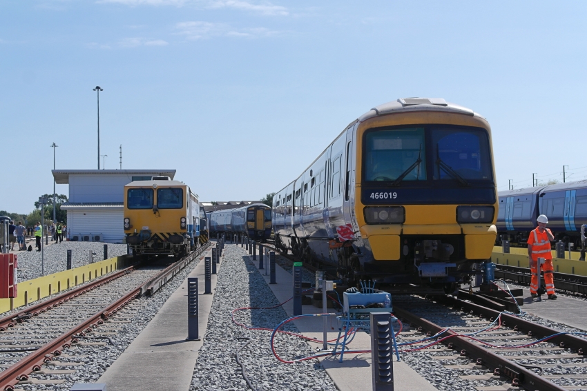 Class 466 No. 466019 was used to demonstrate how derailed vehicles are jacked up and returned to the track. This unit received a mid-life refurbishment at Wabtec Doncaster in 2011 (ref: The Railway Magazine, September 2011). © David Glasspool