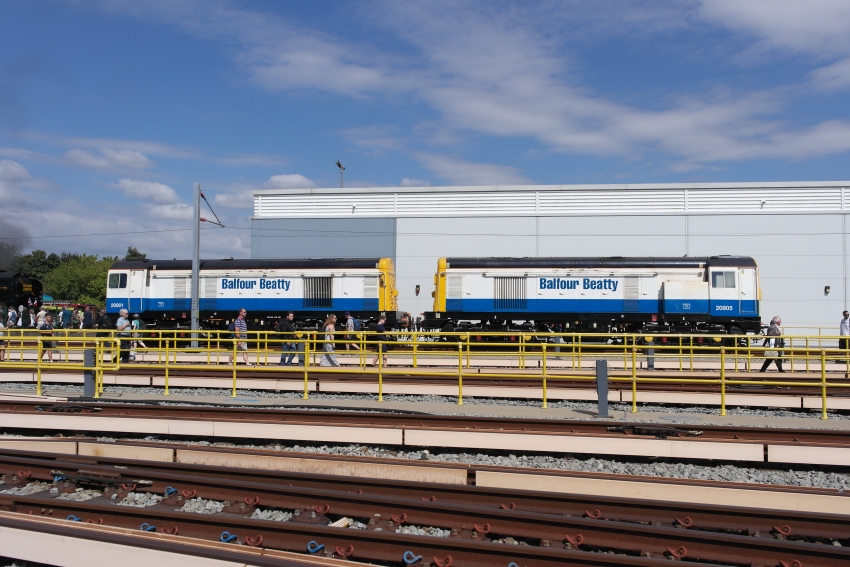 In the period to 31st March 2024, Class 20 Nos. 20901 and 20905 were acquired by "Balfour Beatty" from the "Harry Needle Railroad Company" (ref: The Railway Magazine, May 2024). The pair were repainted from unbranded GBRf livery to the colour scheme seen here at Arriva Traincare’s Bristol Barton Hill Depot (ref: The Railway Magazine, June 2024), after which they moved from there to Barrow Hill Depot, Derbyshire, under their own power on 21st April 2024 (ref: RCTS’ The Railway Observer, June 2025). Nos. 20901 and 20905 were acquired to haul Balfour Beatty’s plant trains and support works connected to the repair of railway drainage infrastructure (ref: The Railway Magazine, June 2024). Behind the pair is the depot’s wheel lathe shed. © David Glasspool