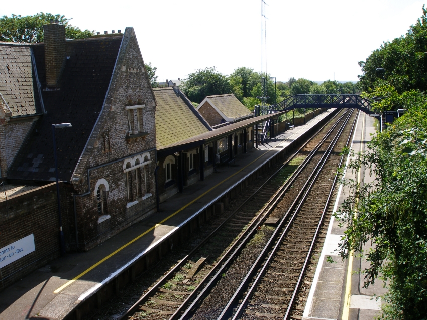 Birchington became ‘’Birchington-on-Sea’’ on the station name boards in 1878. Later improvements under the SE&CR included the installation of a 50-foot-span lattice footbridge between the platforms, residing immediately west of the ‘’down’’ side shelter. Goods facilities were also expanded by the installation of two more sidings west of the station, flanking the running lines either side. The station changed little thereafter, the Southern Railway merely installing swan neck gas lamps to replace the earlier Victorian diamond-shaped variant, in addition to employing ‘’Target’’ name signs.