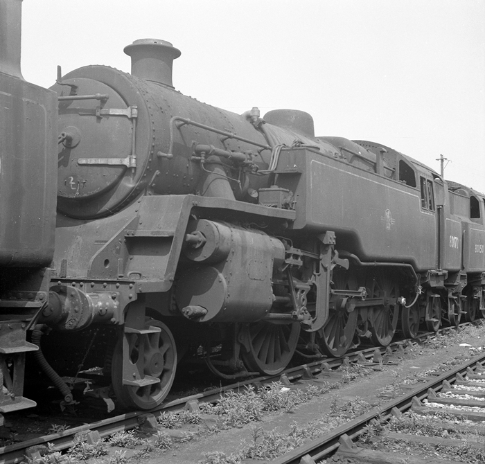 From steam to scrap: No. 80072 is seen sandwiched within a line of 4MT Tanks at Barry Scrap Yard, not long after its arrival there in January 1966. Its coupling rods and 5' 8'' driving wheels remain intact. For the majority of its short twelve year career, No. 80072 was on the London Tilbury & Southend line, working out of Fenchurch Street alongside Fairburn's LMS Tanks of 1945. Overhead electrification in 1962 saw the locomotive transferred to the Western Region, but with the rapid dieselisation of those lines, it soon found itself surplus to requirements. Behind the engine can just be seen No. 80150. Happily, both locomotives survived into preservation, but No. 80150 remains in scrap yard condition and, indeed, still resides on Barry Island, at the Vale of Glamorgan Railway. © David Glasspool Collection
