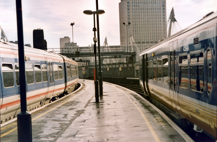The 1980s saw some big changes. In 1985, the trainshed frame was repainted from unassuming grey, into bright red, reflecting the colours of the 1982-established London & SouthEast sector. Concurrent with this, the Southern Railway crest which still existed on the trainshed’s river side façade, was replaced with a longer lasting fibreglass equivalent. Unfortunately, the existence of the 1906 ridge-and-furrow roof was to be terminated as plans, which would transform the station beyond recognition, were pushed through. In 1988, work began on dismantling the trainshed to make way for thousands of tonnes worth of office block, supported above the platforms by a succession of thick columns. Costing £130,000,000, it was not, however, the first such scheme, a similar concept having nearly been realised in 1963. The latter had outlined the removal of the concourse roof to allow for the adjacent hotel to be further extended, towards the buffer stops. Suspended over the platforms were proposed an array of offices and retail outlets, but the scheme was unsuccessful in being granted planning permission. With reference to the 1988 project, the platforms were to become gloomy and claustrophobic, with much vintage character disappearing, but at least passenger facilities were to see improvement. Strengthening of buildings adjacent to the station had occurred during 1987. Whilst most of the 1906 ridge-and-furrow trainshed roof was dismantled to accommodate the office block colossus, interestingly the rear two spans of this structure - immediately adjacent to the existing concourse roof - were retained as part of an enlarged waiting area. The office block over the platforms opened in 1992, although it would be until 1998 that re-glazing of the concourse and restoration of the hotel's façade was finished. It was during the construction of the office block that the terminus once again saw locomotives, in the form of Class 33s on departmental workings.