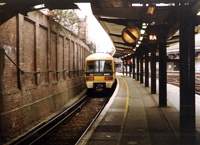 No. 365511 is seen departing Victoria, Faversham-bound, trailing behind a second Class 365 unit. After transfer to the former Eastern Region in 2004, the unit was fitted with a completely re-designed cab front. © David Glasspool