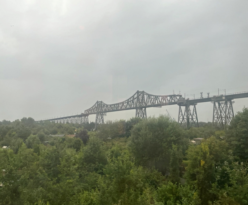 Rendsburg High Bridge carries trains 138-feet (42-metres) above water level (ref: The Railway Magazine, September and October 1949). This is a roughly westward view which includes, on the right bank of the canal, the buildings of agricultural group "Ceravis AG" and logistics firm "HaGe". © David Glasspool