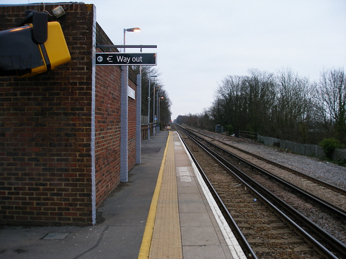 Edenbridge's disused Ground Frame "B" still remains in existence beyond the eastern end of the "up" platform, even though the siding it once controlled has now been removed. Ground Frames "A" and "B" were abolished in 2006 and 2007 respectively. © David Glasspool