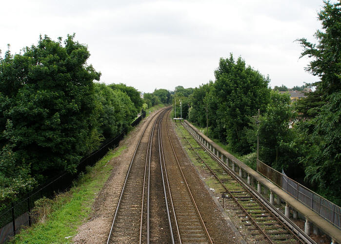 An eastward view shows the departing double-track of the route to Dover Priory, and reveals that one of the