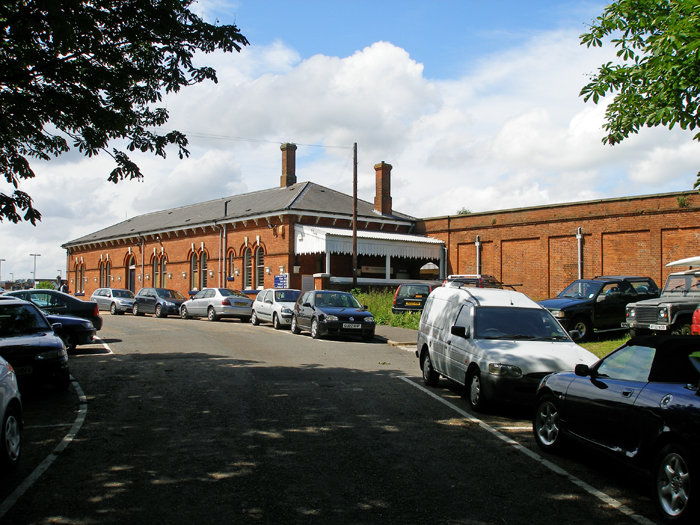 The bay platforms on the "down" side formerly came in from the right. Their site is now partly used for car parking, but much of the land appears to have become a junk yard. The station building here is a mirror image of that on the "up" side, save for some later chimney removals. © David Glasspool