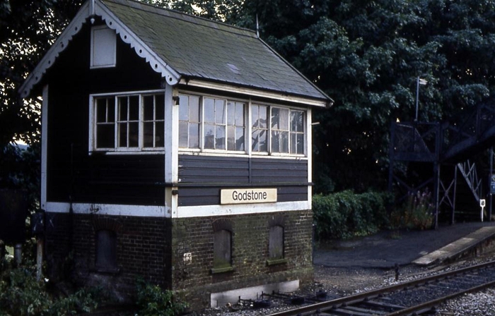 The signal box formerly had windows at the pinnacle of the gable, but by the time of this photograph, these had been boarded up. The same could be said for those windows within the cabin's base. The gable valance was a standardised Railway Signal Co. pattern. © Peter Gibbons