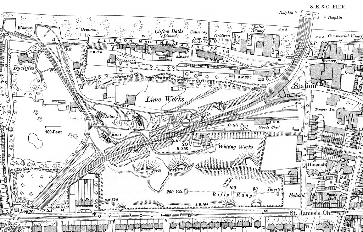 survives today (for now). Of note is the tramway along Overcliffe, complete with passing loops, and the narrow gauge system of the Lime Works.
