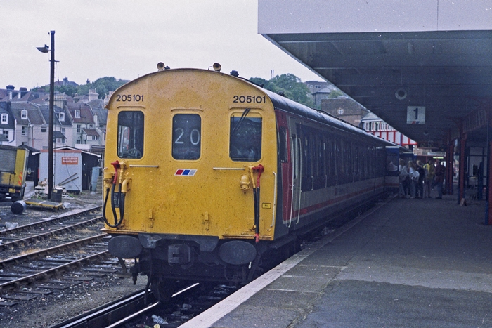 Hampshire/Berkshire unit No. 205101, seen stabled in the bay platform with an Ashford service, was unique