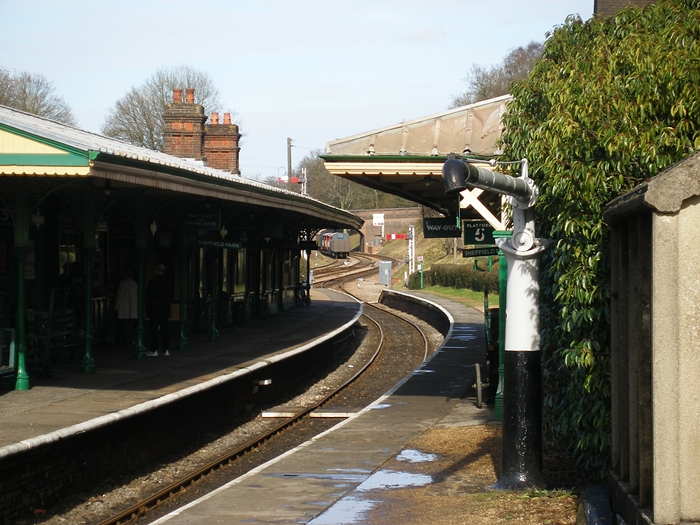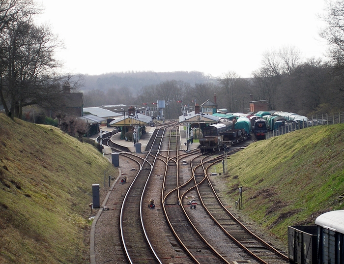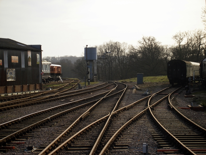 The Ardingly spur can be seen branching off to the right in this southward view; this currently serves as an elongated rolling stock siding. On the left is the end of the carriage repair shed, which requires a headshunt manoeuvre to access. © David Glasspool