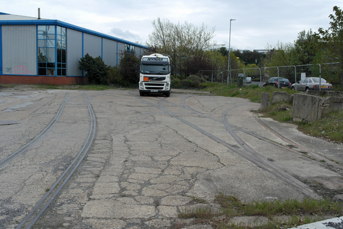 Photograph 9: On the opposite side of the road to the offices can be seen the remains of those tracks which are visible in photographs 3 and 4. © David Glasspool