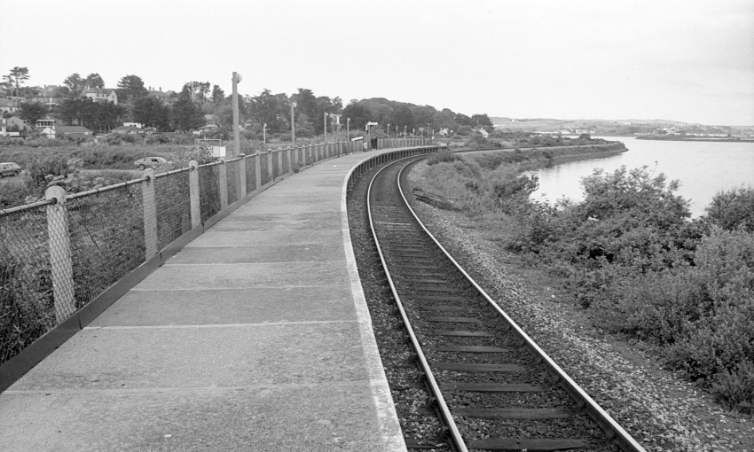 The River Hayle is on the right of this north eastward view from the sole prefabricated concrete platform; the car park is visible on the left. The platform at Lelant is about another 700-yards in the distance, beyond the bend in the line. © David Glasspool