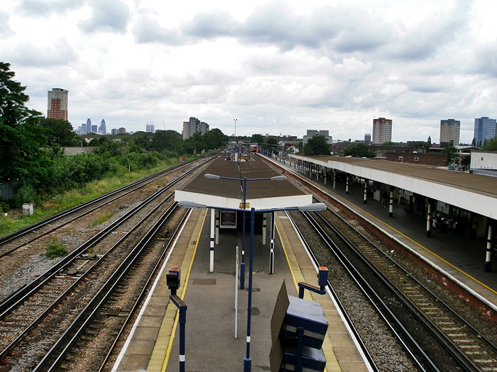 Looking north from the road bridge, we see the "fast" lines on the left, which occupy the former site of the "up" island platform. On the right, the 1985 extension of the ELL platform canopy is obvious. © David Glasspool