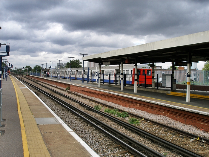 "A" Stock is seen approaching the bay platform with a service from Whitechapel. In view is a short section of railings which have for long separated main line and East London Line platform surfaces. © David Glasspool