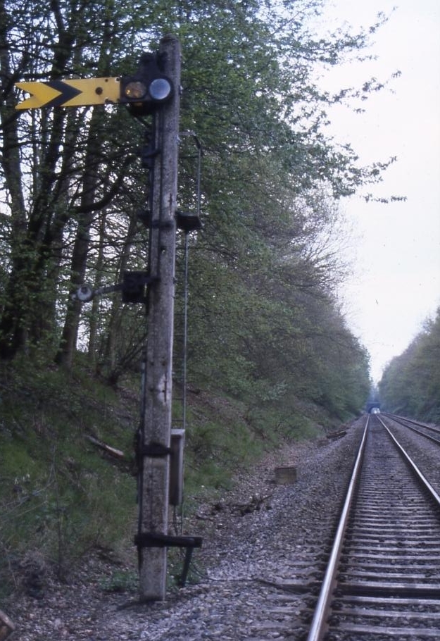 Penshurst Tunnel is in the background of this view, which reveals the ''up'' distant signal upon