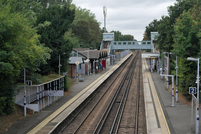 Albany Park is the youngest station on the line, having opened on 7th July 1935 during the 1930s housing boom radiating from London. Apart from the diminutive signal box, which closed on 1st November 1970, the station retains its major architectural features, although the timber canopy valances have been replaced by corrugated metal panels. The footbridge has also been refurbished, which has seen the addition of corrugated metal sheeting along both sides of the walkway, again in the place of timber. A near identical station was opened by the Southern Railway at Falconwood, on the Bexleyheath line, on 1st January 1936. This was the scene on 10th September 2016. © David Glasspool