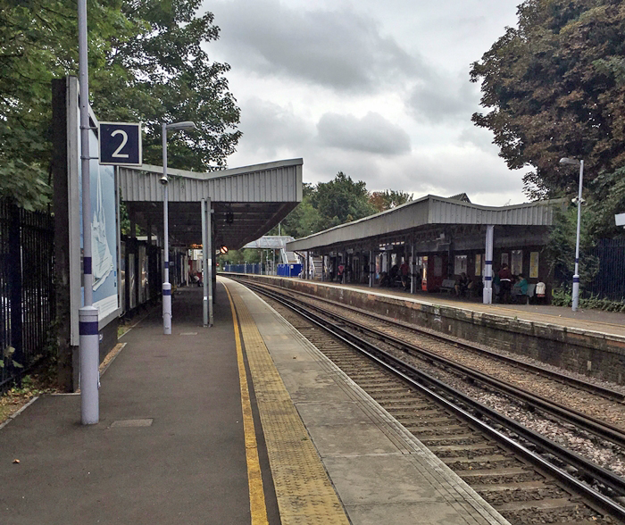 The station at Sidcup opened a month later than the Dartford Loop Line. Over time, the site has been rebuilt to the extent that there are no longer any SER structures upon the platforms. The framework of the platform canopies dates from a partial rebuild by the Southern Railway in 1937, but the corrugated valances are post-2000. "Up" and "down" side SER buildings were demolished in 1987 and 1991 respectively, and further work was in progress in the background of the above photograph from 10th September 2016, to install a new footbridge. © David Glasspool