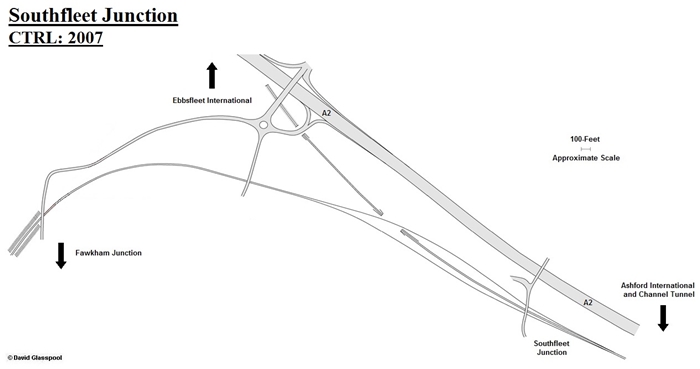 Diagram showing the "flying junction" arrangement at Southfleet. Click the above for a larger version. © David Glasspool