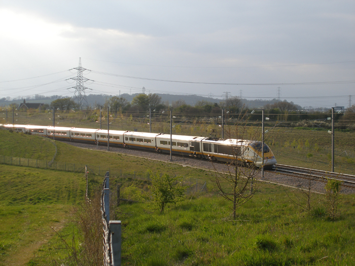 The roof of the former Southfleet Station Master's house can be seen in the left background, as the rear of a London-bound Class 373 formation is observed on the curve from Section 1 of the CTRL. © David Glasspool