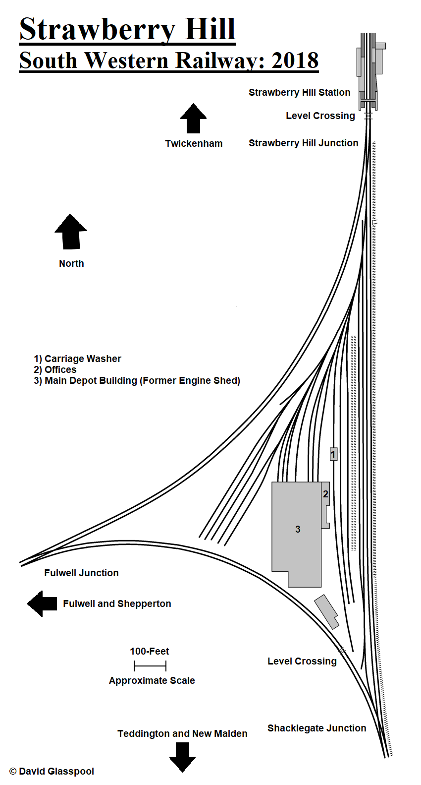 This depot has a long history, having started life as far back as 1897 as a steam locomotive shed. Situated within the triangle formed by the Shepperton branch and Kingston Loop, the current buildings still follow the outline of the 19th Century motive power depot, although they have by now serviced electric stock for far longer than they ever did steam traction.