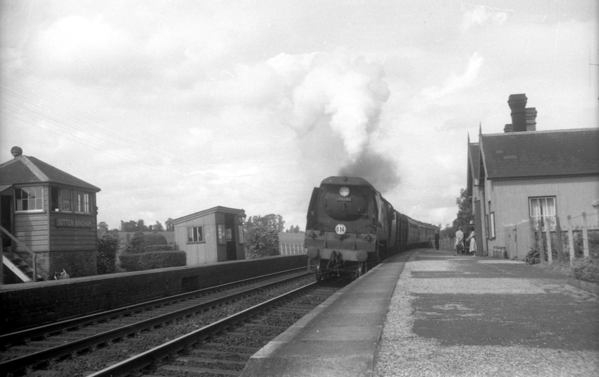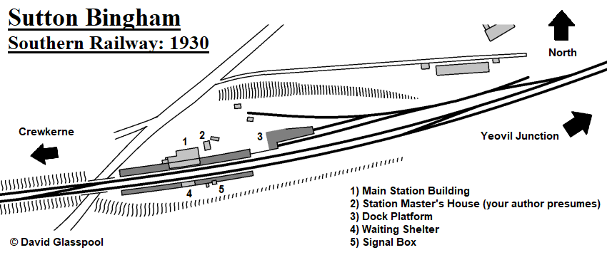 The standard gauge single-track line between Yeovil Junction and Exeter opened to regular passenger traffic on 19th July 1860, completing a 173-mile-long trunk route for the London & South Western Railway (LSWR) from Waterloo via Salisbury. Sutton Bingham came into use at this time, being a rather unassuming station situated little over two-route-miles west of Yeovil Junction. Two gently-curving platforms on what was initially a passing loop (doubling to Exeter was completed in 1870) served this small Somerset village which, as reported in the 1861 census, had 11 inhabited houses and a population of 67. The locality is decidedly rural and sparsely populated even today, so it is surprising that a station was maintained here for more than a century.