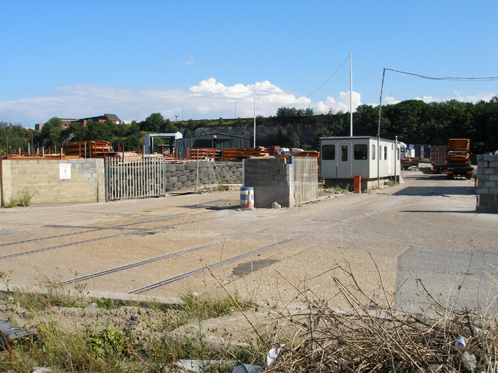 Photograph 11: Now looking south, rails running across Manor Way are evident. Between here and the chalk ridge in the background, the latter upon which London Road runs, was where the main cement works complex was situated. This area is now partly occupied by a road haulage firm. © David Glasspool