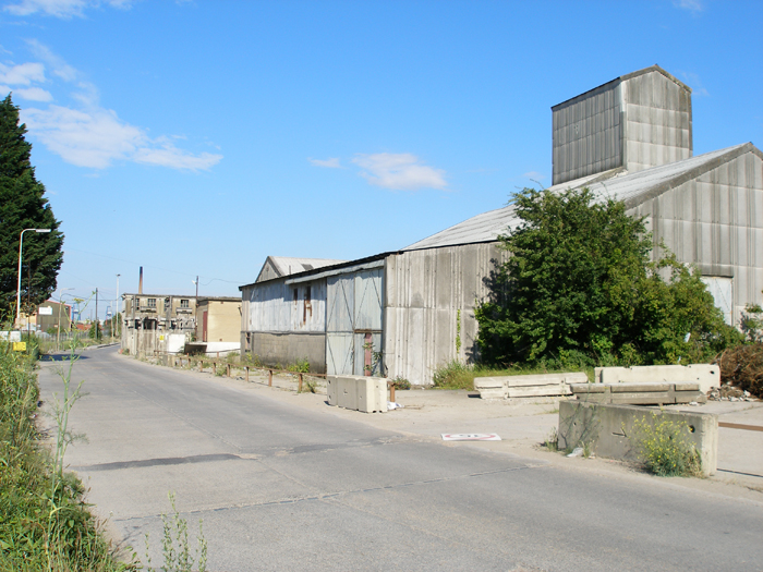Photograph 12: Most of the cement works' buildings were demolished during the 1990s, but the corrugated structure on the right is one fragment which has managed to survive. This is an eastward view along Manor Way. © David Glasspool