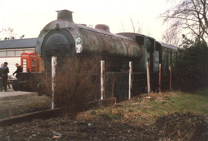 A resident at Tenterden Town for a number of years was this sorry looking ''Austerity'' 0-6-0 Saddle Tank,