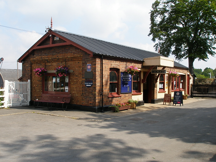 The delightful station building shows signs of later brickwork within its nearside end elevation. The brick