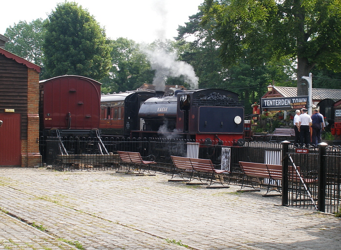 ''Austerity'' Saddle Tank No. 25 ''Northiam'' (formerly WD 197) is seen waiting to depart with the first train of