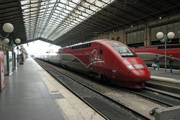 No. 4342, seen at Paris Gare du Nord, is one of the "PBKA" TGV sets, twenty-seven of which were originally ordered for the "Thalys" operation. The carriages are identical to those of the "Réseau" sets, but the most obvious difference is the restyled power car, which follows the design of those used on the TGV "Duplex" formations. The "PBKA" sets are cleared to run in France, Belgium, Germany, and the Netherlands. © David Glasspool