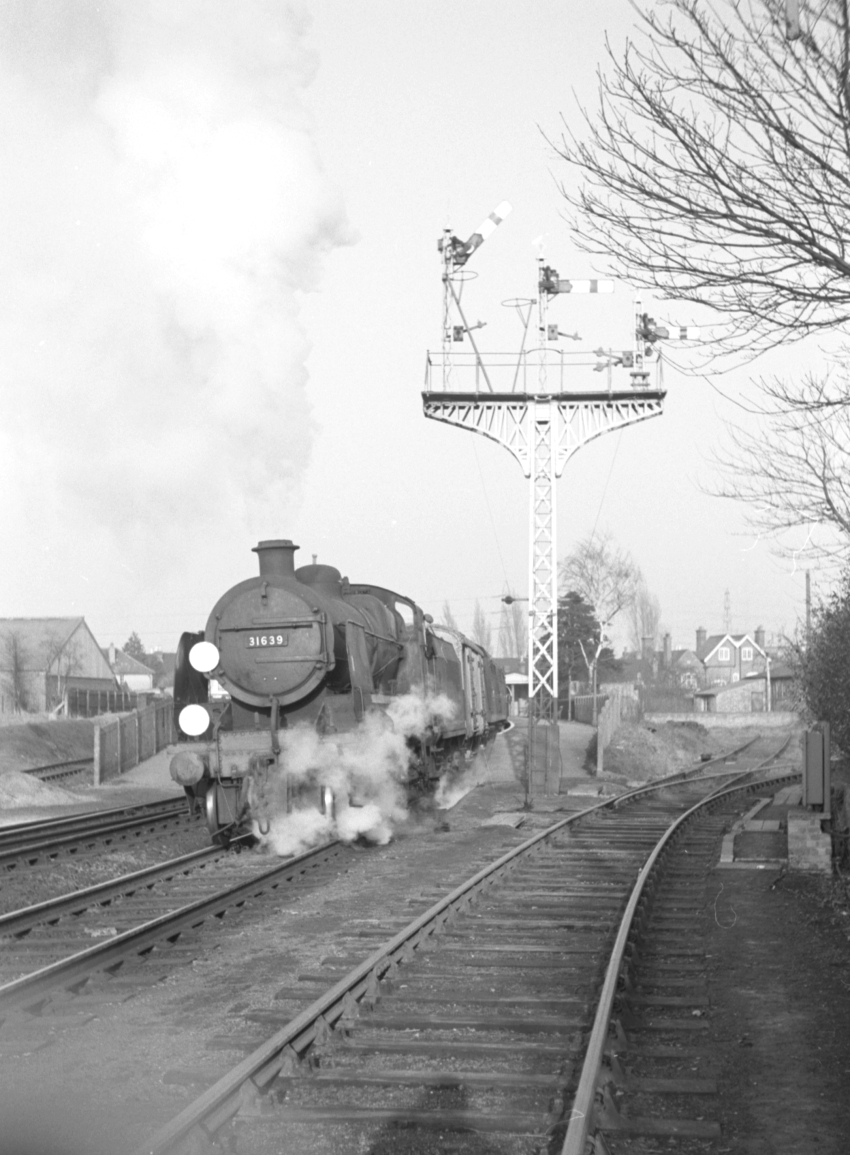 Level crossings aside, the Southern Railway made some cosmetic alterations at Totton, which included rebuilding the platform faces from brick to prefabricated concrete, and using the latter material to construct fencing for the rears of the platforms. As standard, Swan Neck gas lamps and "Target" name signs came into use on both platforms. Thereafter, it was left to British Railways (BR) to carry out the most significant of changes. Electrification of the Waterloo Main Line from Brookwood to Branksome (Dorset) was completed in 1967, the full accelerated timetable coming into force on 10th July of that year. Totton retained semaphore signals as part of this scheme, but the section of line from there to Brockenhurst (exclusive) was converted to colour light operation. On 2nd of the following October, public goods traffic was withdrawn from Totton (ref: Clinker's Register, 1980), which for long had been handled at a spacious yard remote from the station.