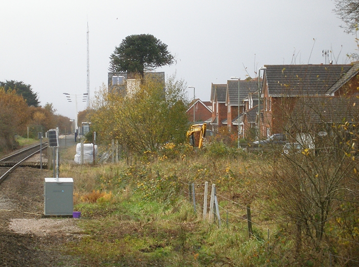 The station is in the background of this westerly view. The overgrown area on the right was formerly host to the goods yard, which survived up until 1990. The new houses on the right were built on allotment land. © David Glasspool